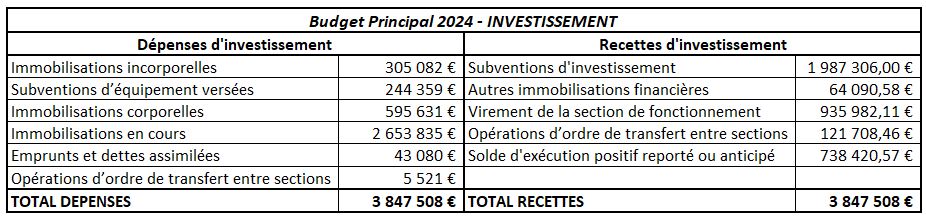 Détail du budget d’investissement :